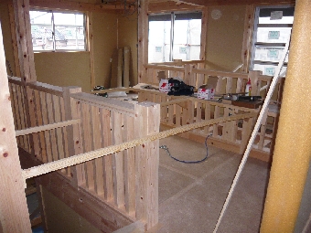 大工が外部及び内部、床、壁、天井の仕上木材の取り付けを行っていきます。